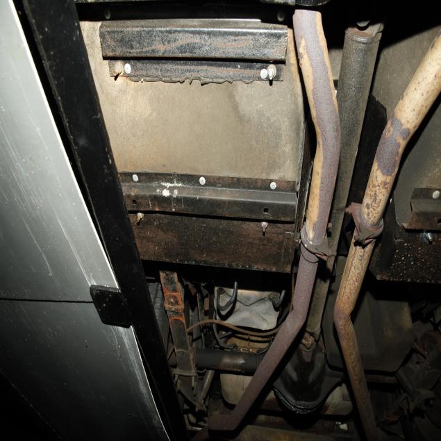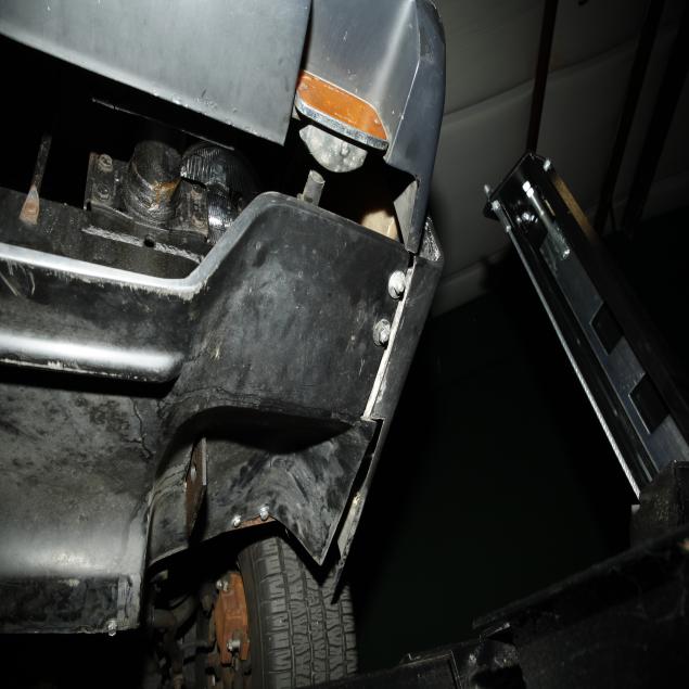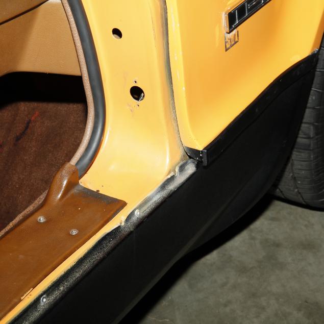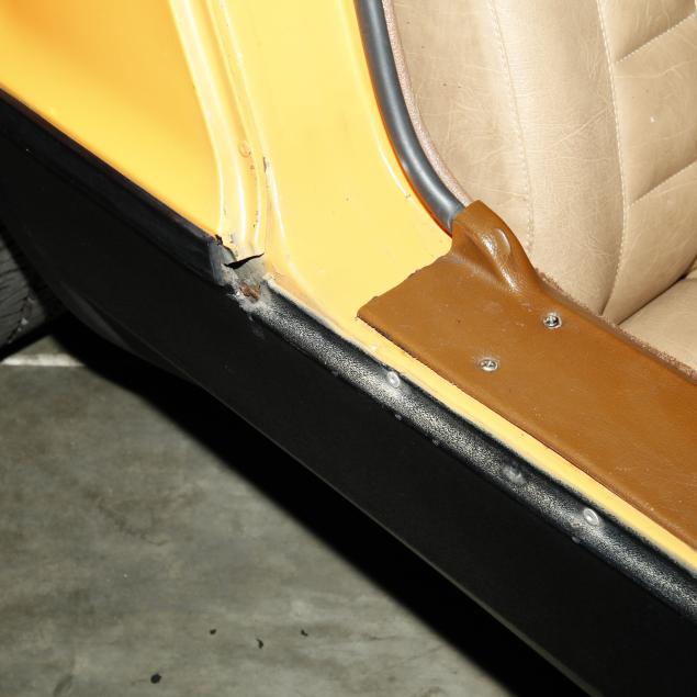 Some cracking to fiberglass around drivers door; repaint to front of car due to small engine fire; auxiliary air fitting added for enhanced door operation after sitting for long periods; drivers side door does not fully open, compared to passenger door; a/c compressor does not have a belt; no other apparent concerns.