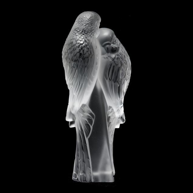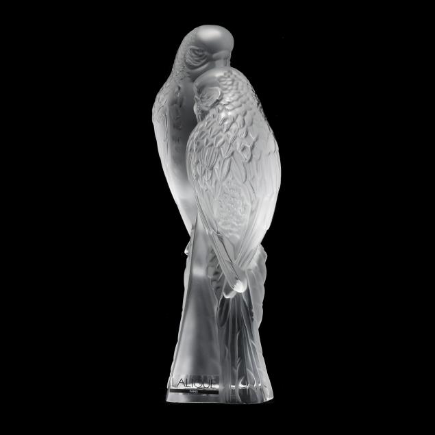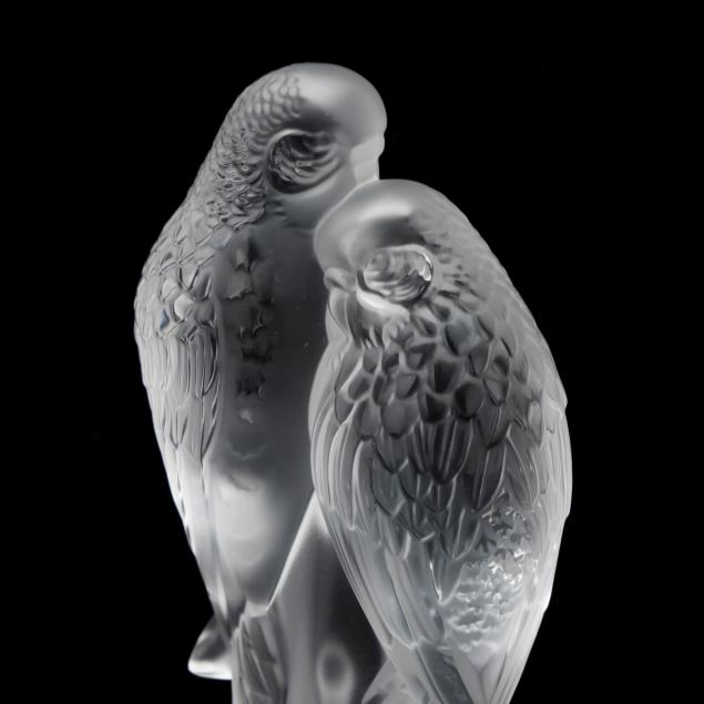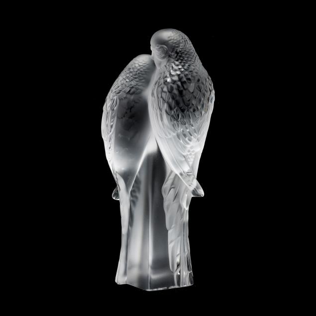 Lalique Pair of Parakeets Crystal Paperweight