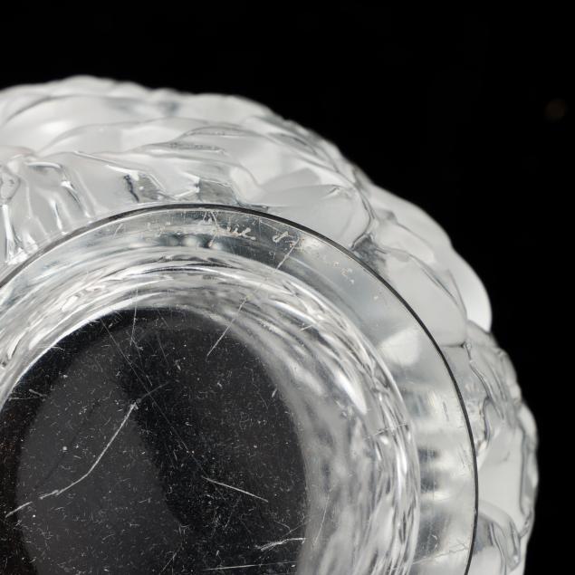 France, late 20th century, clear molded crystal in frosted and polished surface, marked to underside.