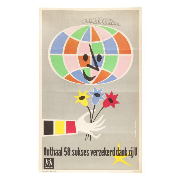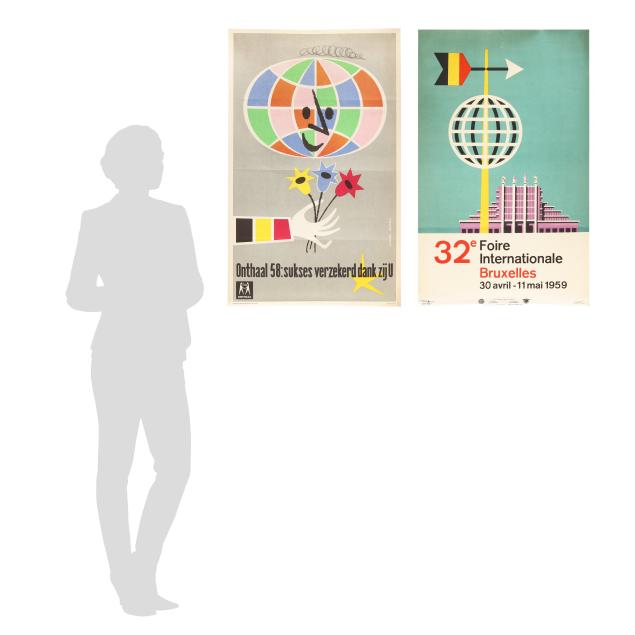 Onthaal 58: Sukses Verzekerd Dank zij U, chromolithograhic poster, 1958, published in Brussels, unframed (39 x 24 1/2 in.); the second,
