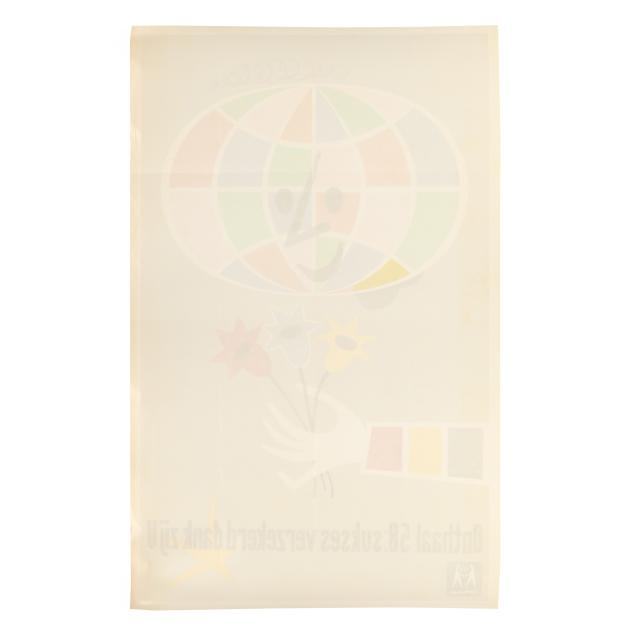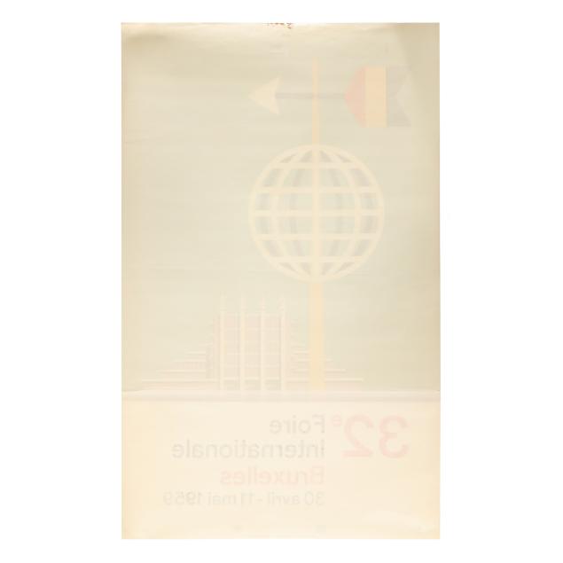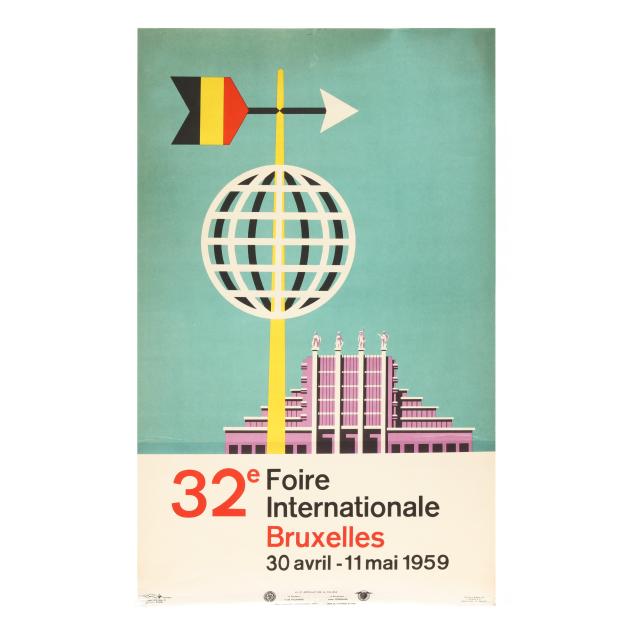 32e Foire Internationale Bruxelles, 1959, lithographic poster in colors, published by Creation Vanypeco, Brussels, unframed (39 1/2 x 24 in.).