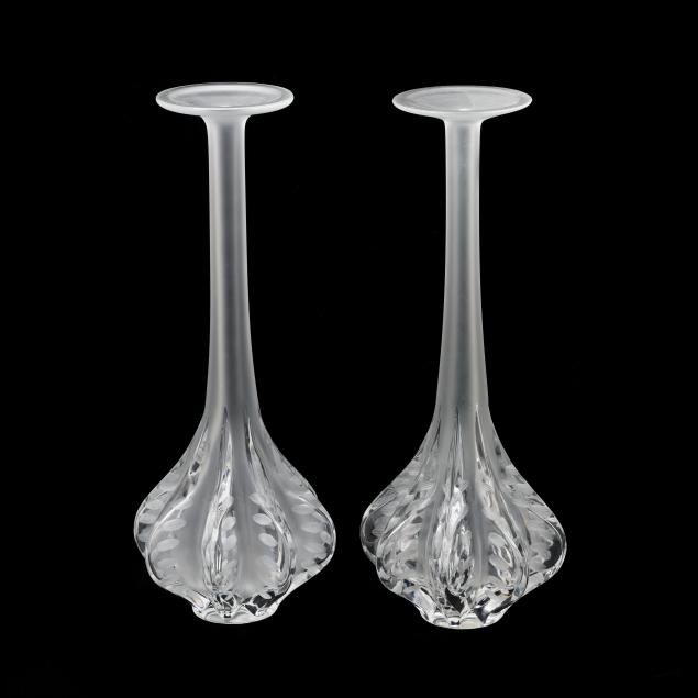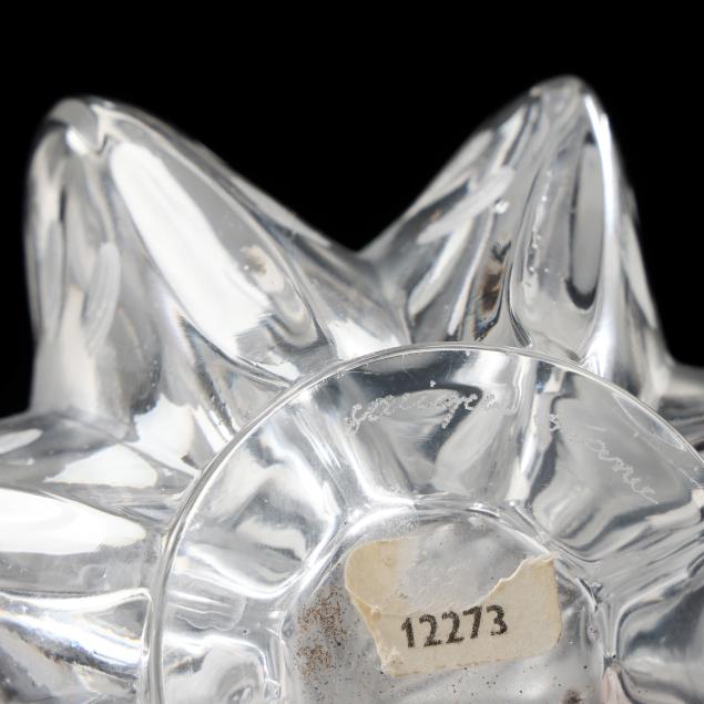 France, late 20th century, clear molded crystal in frosted and polished surface, marked to underside.