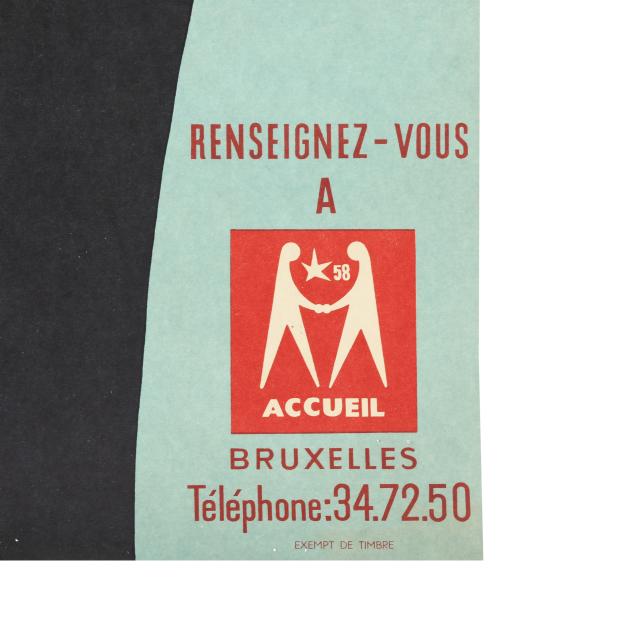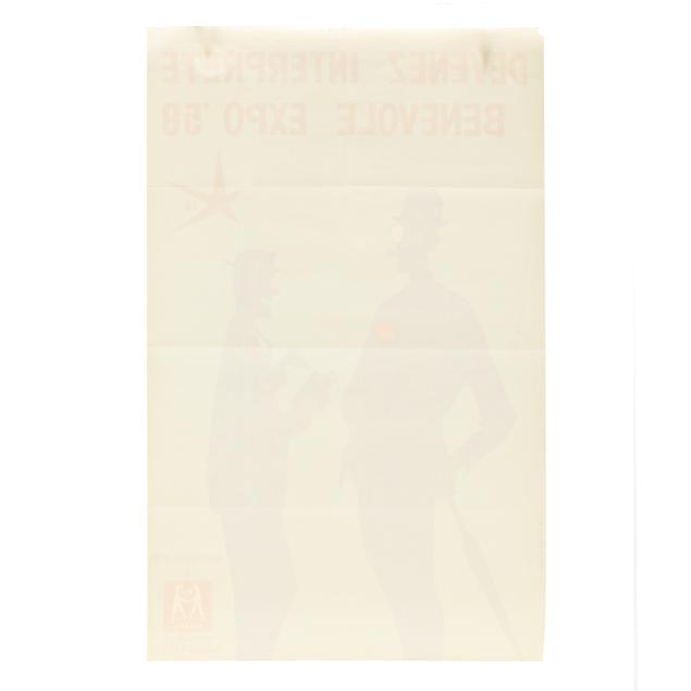 Devenez Interprete Benevole Expo '58: B+, loss at the upper left corner, horizontal creasing, wear to the edges.