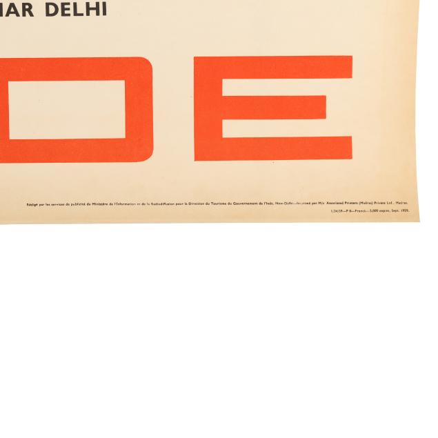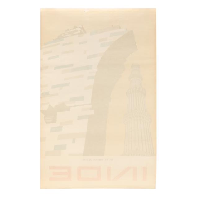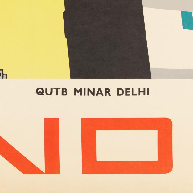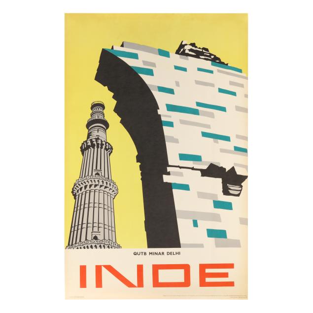Qutb Minar, Delhi, Inde, lithographic poster in colors, 1959, sponsored by the New Delhi Tourism department, printed and published in France, unframed (39 1/2 x 25 in.).
