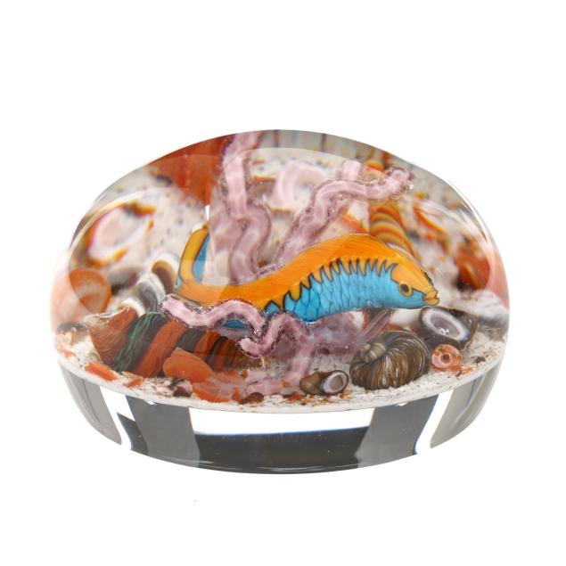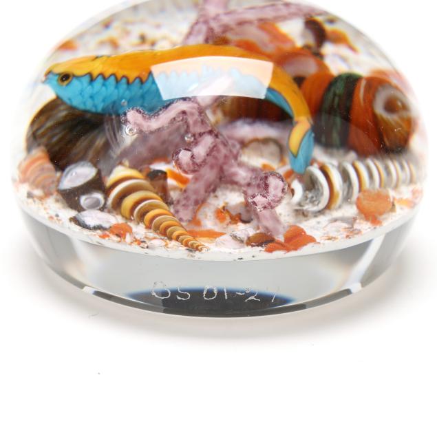 Gordon Smith (American, b. 1959), Art Glass Paperweight with Eel and Shells