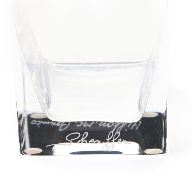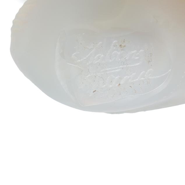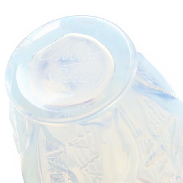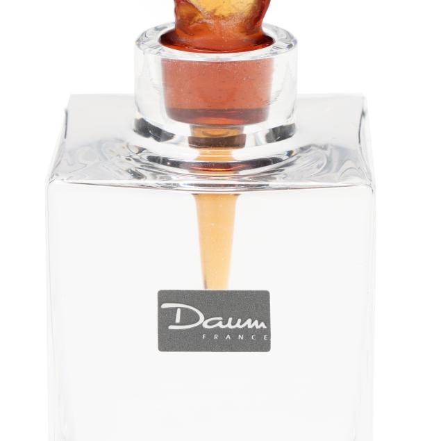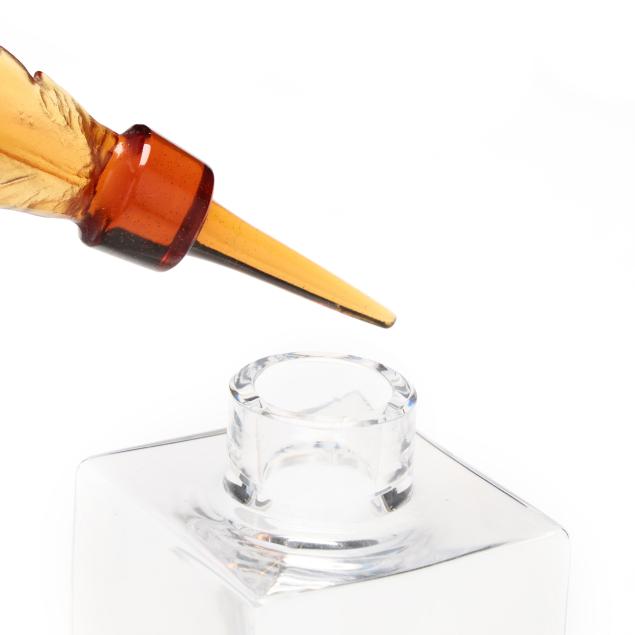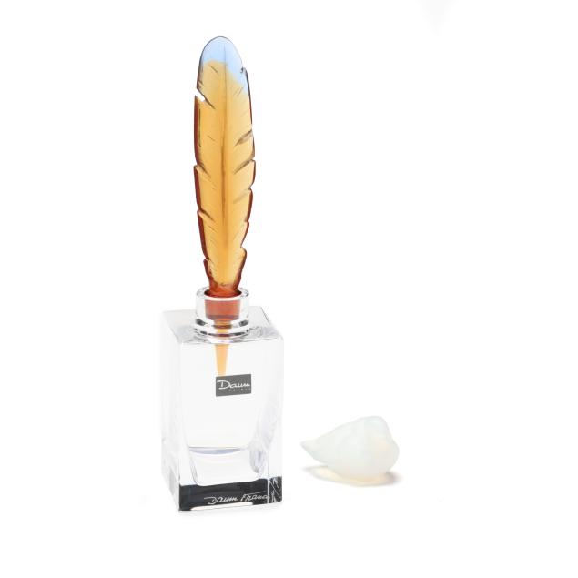From the Estate of the late Lynette G. Totten, Butner, North Carolina Fleabites to two corners at base of Moser bottle, some scattered scuffs to underside; small chip and hairline to feather stopper of Daum bottle; fleabites to beak and right wing of Sabino bird.