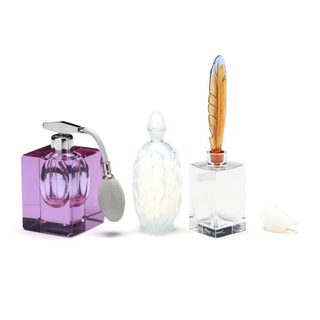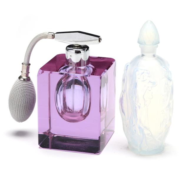 Late 20th century, to include a Moser (Czechoslovakia) purple perfume bottle with squeeze bulb; a Daum (France)