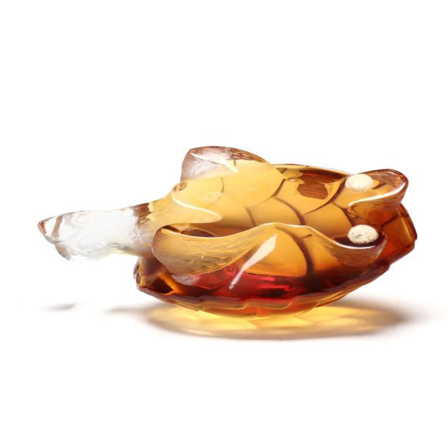 France, late 20th century, molded crystal in frosted and polished surface, marked to underside and labeled to shell.
