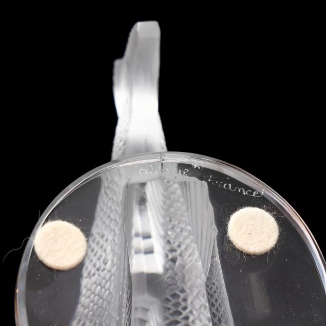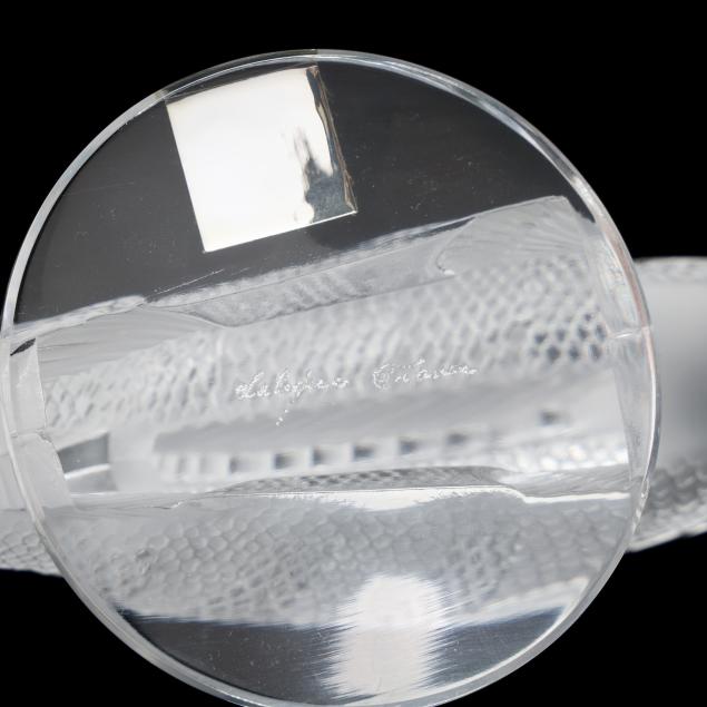 France, late 20th century, clear molded crystal in frosted and polished surface, signed and labeled.