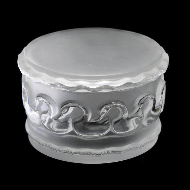 Tourterelle round pin tray; a swan patterned powder bowl; and a blue