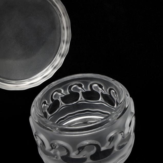 Tourterelle tray base; small scuffs to several swans on powder jar.