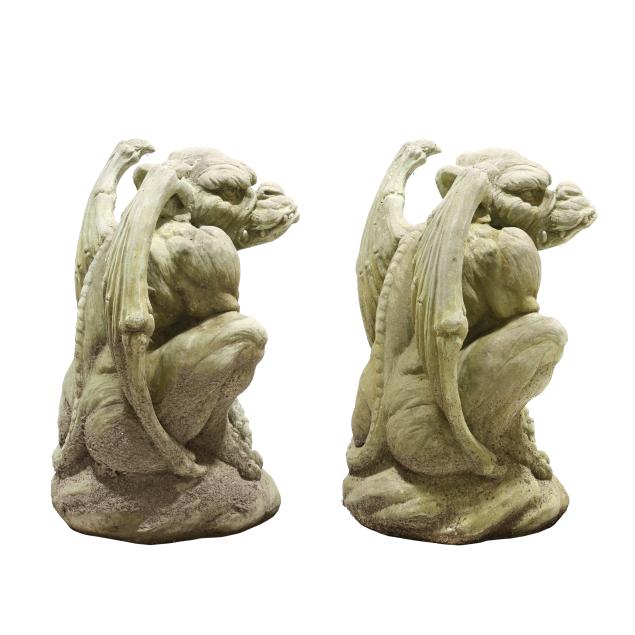 Pair of Cast Stone Gargoyle Statues