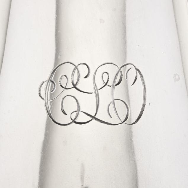 First half of 20th century, the lobed form with a uniform foot and foliate rim, monogrammed.