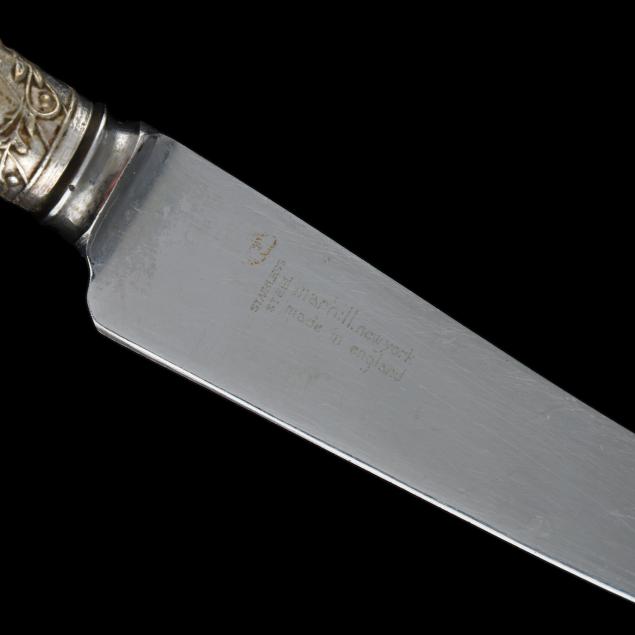 From the Collection of Josephine Chapman Borthwick, Pinehurst, North Carolina Some looseness and glue repairs to knife handles, one with buckling; the sifter with solder repairs.