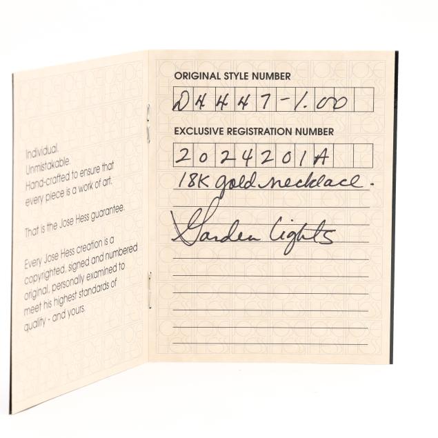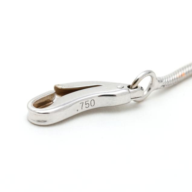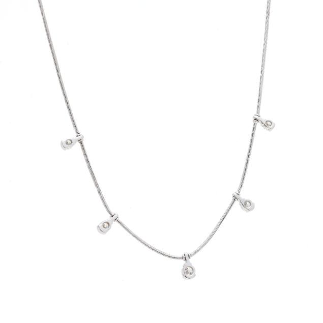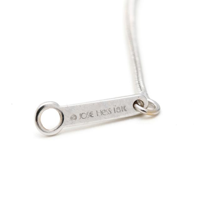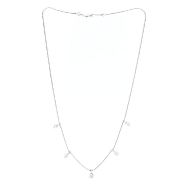 The white gold snake chain suspending five stations with half bezel set full cut round diamonds weighing approximately 1.0 total carat (H-I color, SI1-SI2 clarity), completed with a hinged clasp, stamped 750 / Jose Hess / 2024201A.