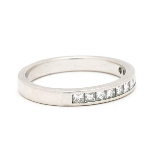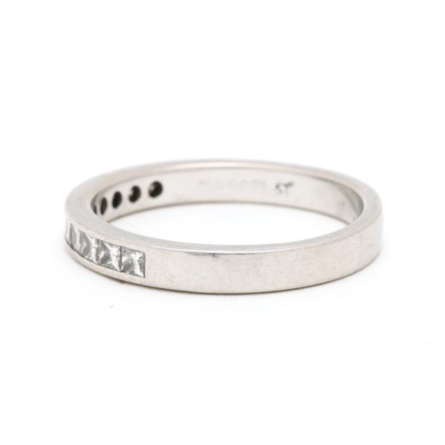 Channel set with princess cut diamonds weighing approximately .50 total carat (G-H color, VS2-SI1 clarity), stamped 950PLAT.