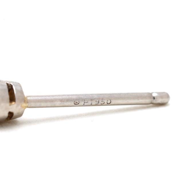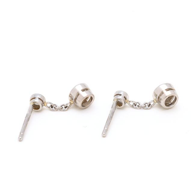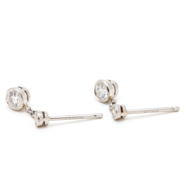 Centered on bezel set full cut round diamond studs (2.3mm), with cable chain and bezel set full cut round diamond drop (3.5mm), completed with friction posts and push backs, stamped PT950. The total diamond weight is approximately .50 carat (G-H color, SI1-SI2 clarity).