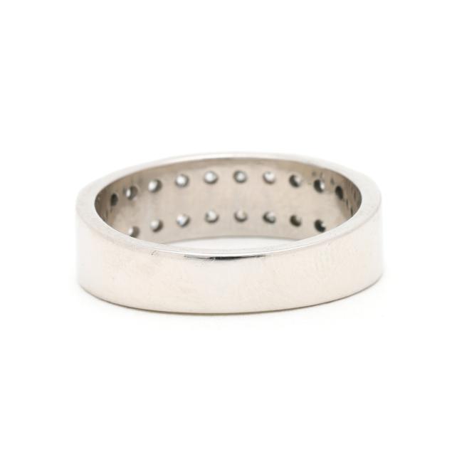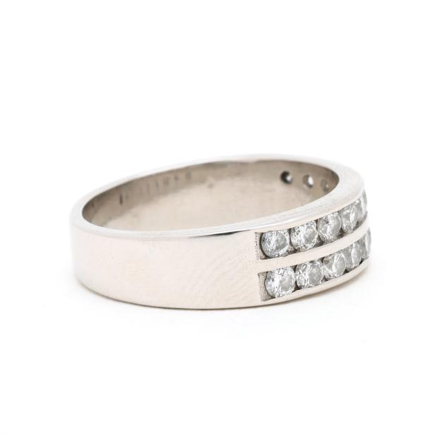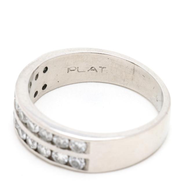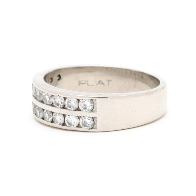 The platinum band with double rows of channel set full cut round diamonds weighing approximately .80 total carat (G-H color, SI2-I1 clarity), stamped PLAT.