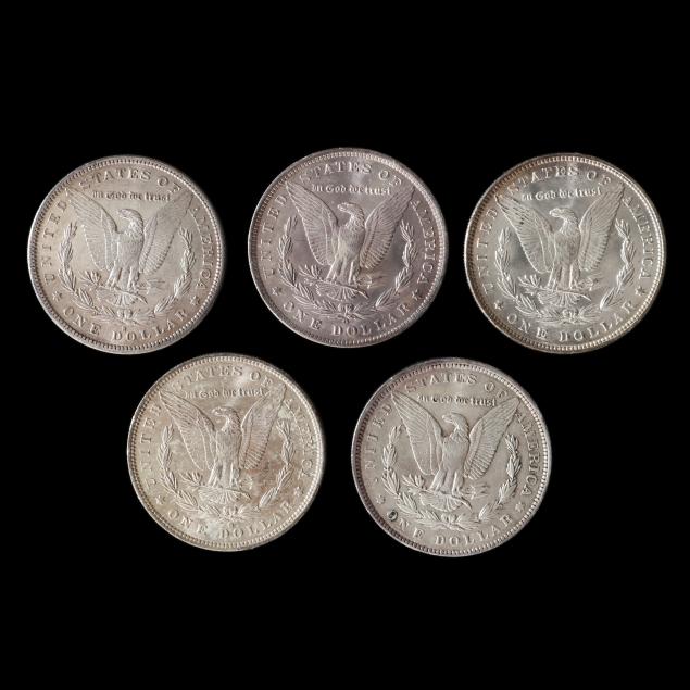 Five Uncirculated 19th Century Morgan Silver Dollars