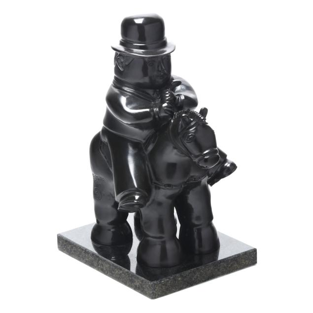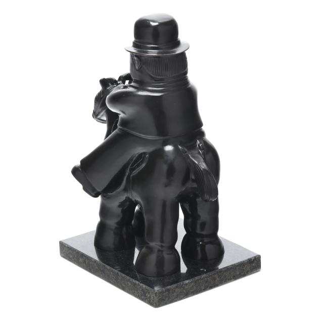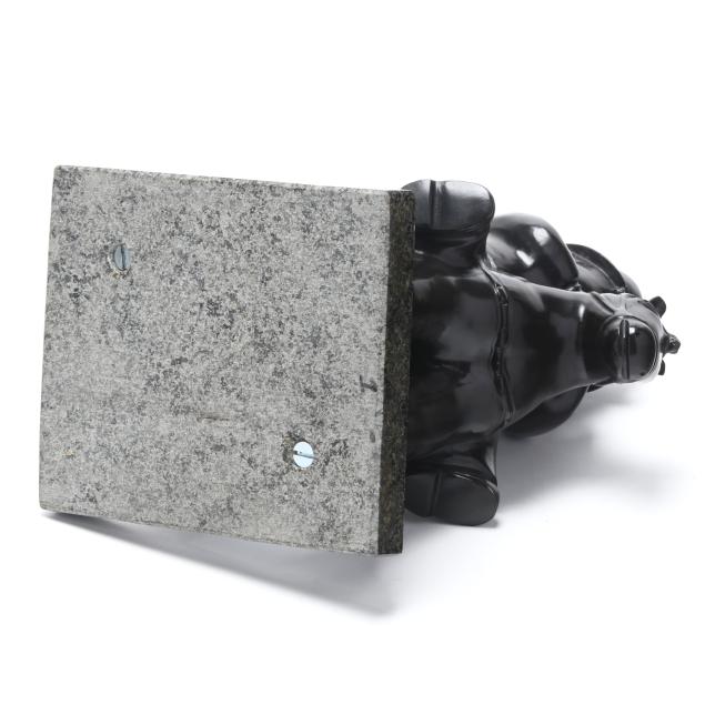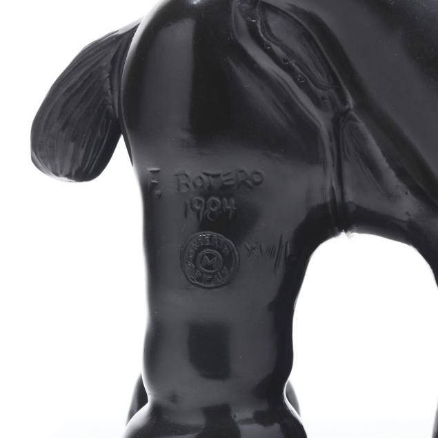 Patinated bronze, signed and dated "F. BOTERO / 1984," with impressed "Fonderia M Italy" foundry mark and numbered "XVI/L" to the rear right leg, mounted to a rectangular stone base.