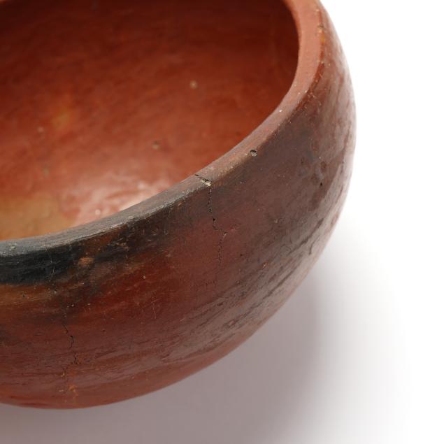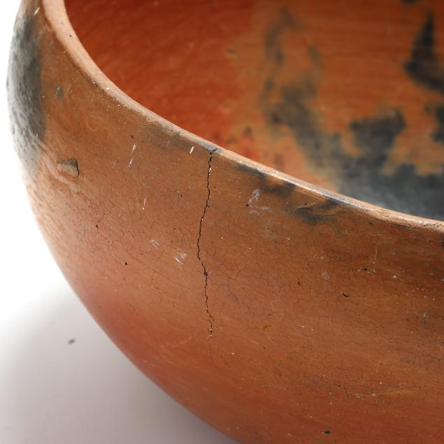 Characteristically her pieces consist of terra-cotta earthenware bodies, predominantly completed without any decoration. Additionally, she covered many of her cooking pots and yabba bowls with a bauxite dirt slip and burnished them with river stones to fashion their marble like sheen finish. Her pieces were always “signed” with four shallow finger impressions which were horizontally placed.