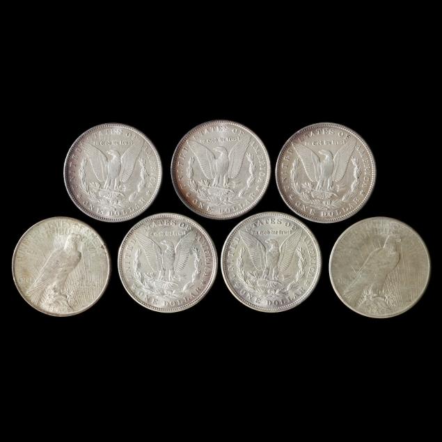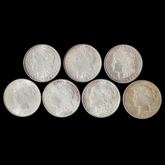 seven-silver-dollars-consisting-of-five-morgans-and-two-peace-dollars