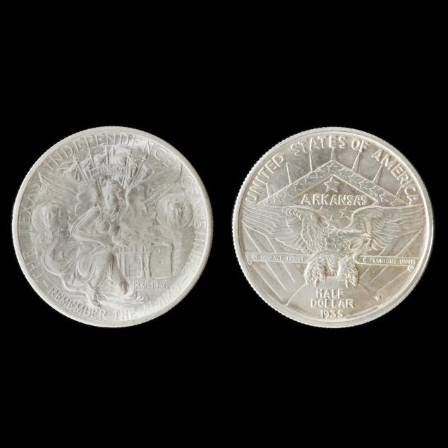 As follows: 1936 Arkansas Centennial Half Dollar, light wear to eagle's breast, else Uncirculated;...plus: 1936 Texas Independence Centennial, Uncirculated.
