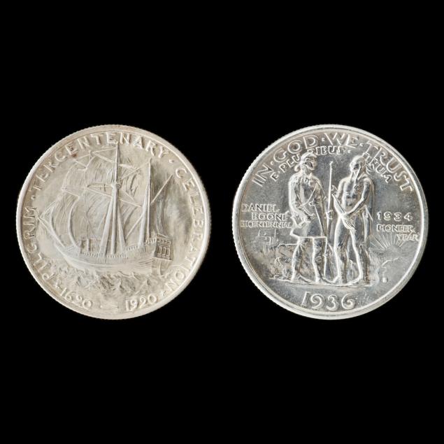 1620 Pilgrim Tercentenary Half Dollar and 1936 Daniel Boone Half Dollar