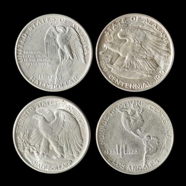 Choice BU coins to include: 1921 Alabama Statehood commemorative half dollar; 1923 Monroe Doctrine commemorative half dollar; 1925 Stone Mountain Commemorative half dollar; 1945 Walking Liberty half dollar.