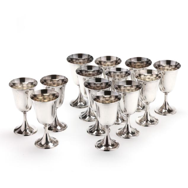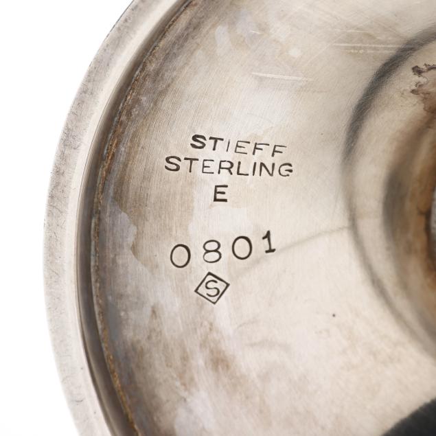Includes a set of (12) with mark of Stieff, pattern number 0801, and (1) with mark of M. Fred Hirsch Co., pattern number 25X; not monogrammed.