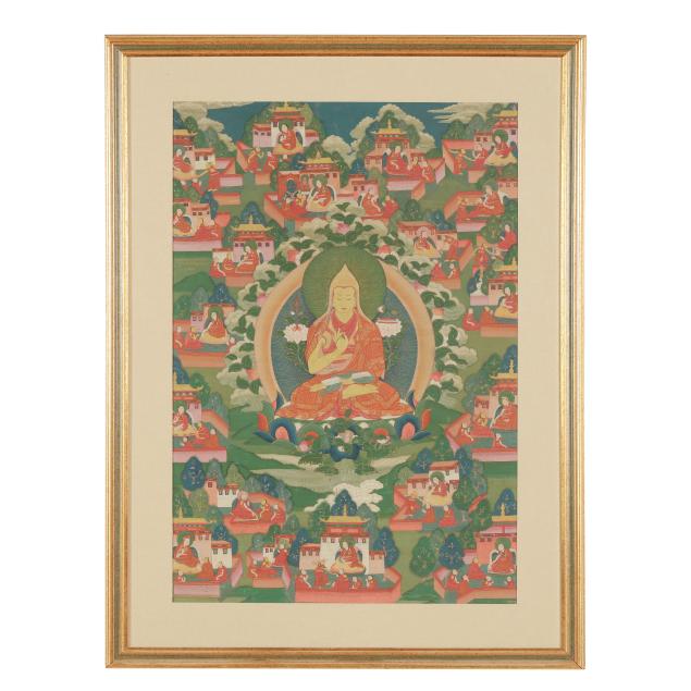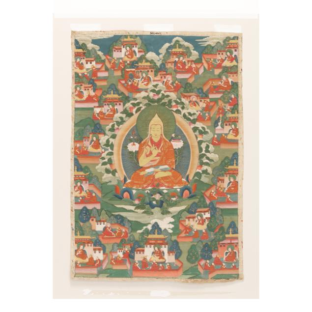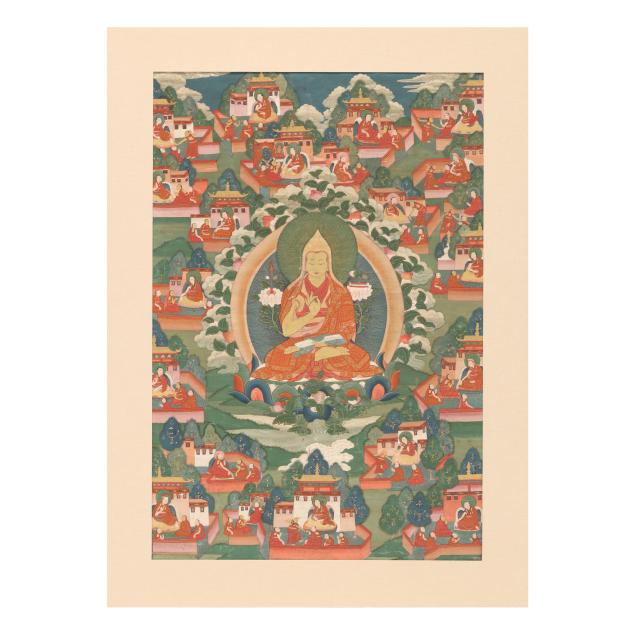 A similar thangka painting sold most recently at Sotheby's, New York on September 18, 2023, lot 188; and at Bonham's, San Francisco, on June 27, 2017, lot 8013.