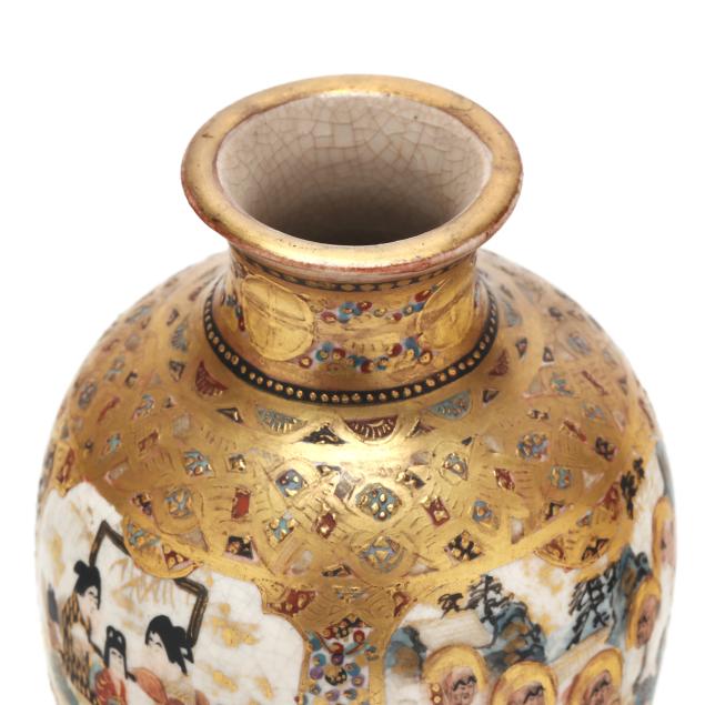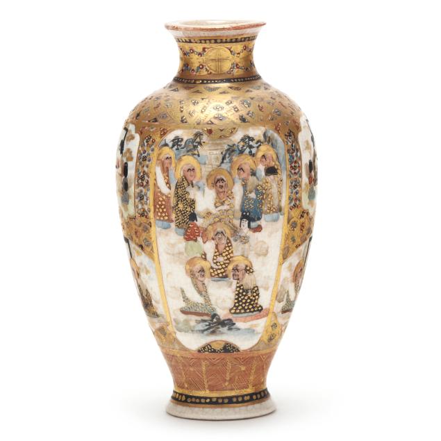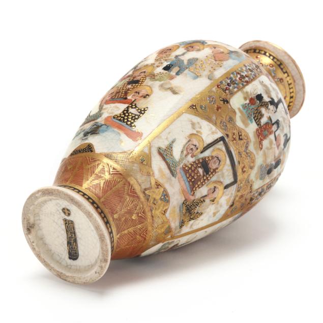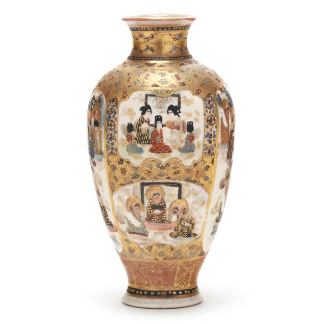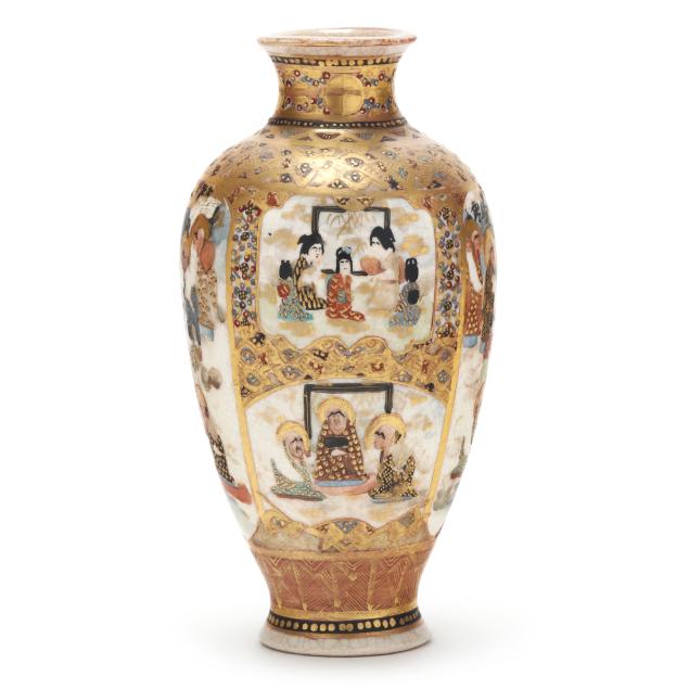 19th century, vase is hand painted in gilt and polychrome enamels with vignettes and shaped registers populated with groups of secular and religious figures, signed to the underside.