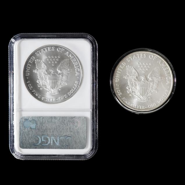 2006 Silver Eagle First Strikes NGC MS69 and a 2004 Eagle, not graded