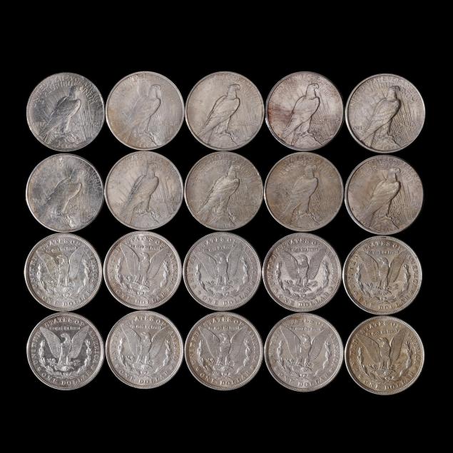 Uncirculated Roll of Ten (10) Morgan and Ten (10) Peace Silver Dollars