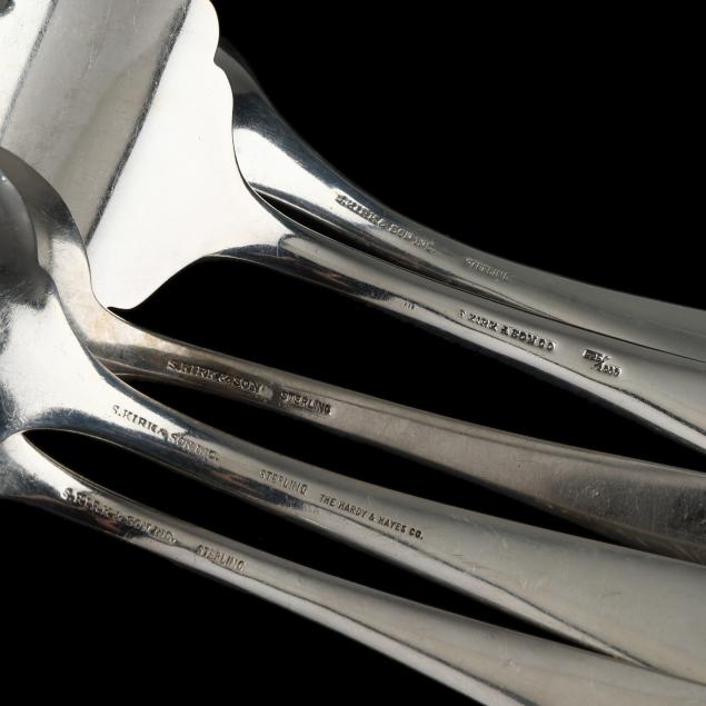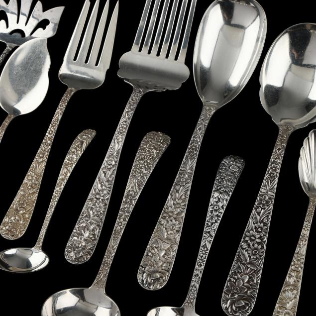 (14) pieces to include: an oversized serving fork; a large cold meat serving fork; a medium cold meat serving fork; a large serving spoon; a casserole spoon; a pierced tablespoon; (2) bacon forks; a gravy ladle; (2) cream ladles; a sugar spoon; a jelly spoon; and a bon bon spoon.