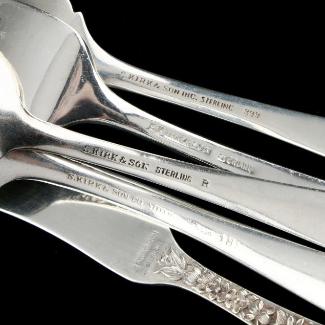 Good estate condition with light use wear; some iced teaspoons and the tablespoons with monograms; the pieces with marks from various periods.