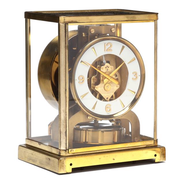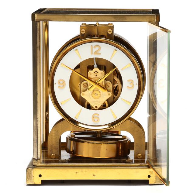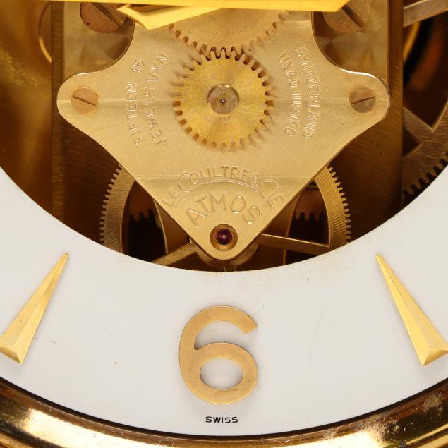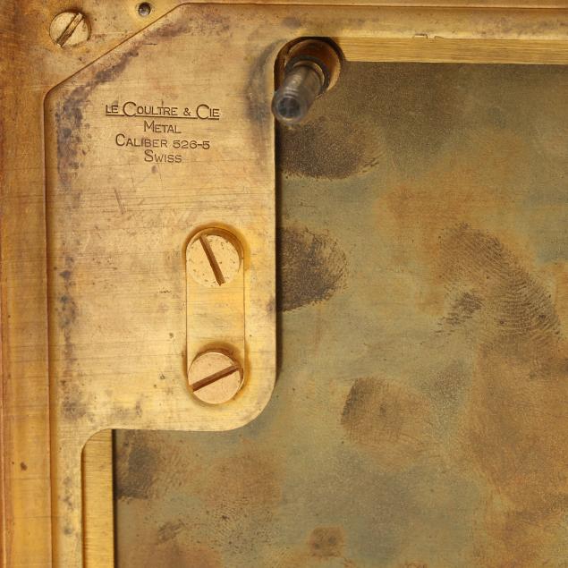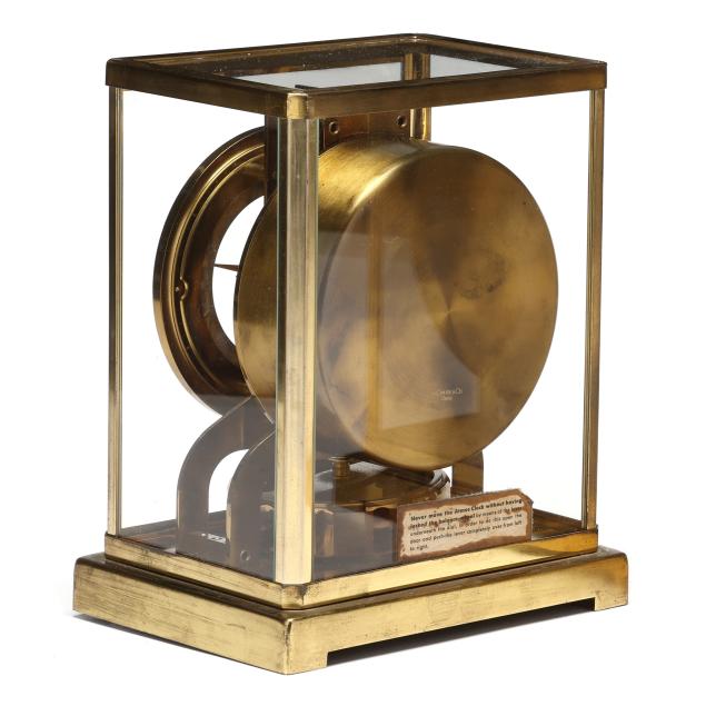 Switzerland, third quarter 20th century, fifteen jewel movement with white round dial signed within a gilt brass and glass case, serial no. 108531 and caliber 526-5, retaining original care label to posterior, with lock for pendulum to interior and marked to underside, presented in original box.