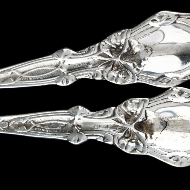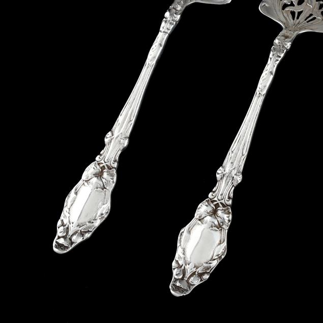 Art Nouveau Style Sterling Silver Salad Serving Set