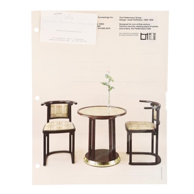 Josef Hoffman (Austrian, 1870-1956), Fledermaus Group Cafe Table and Chairs