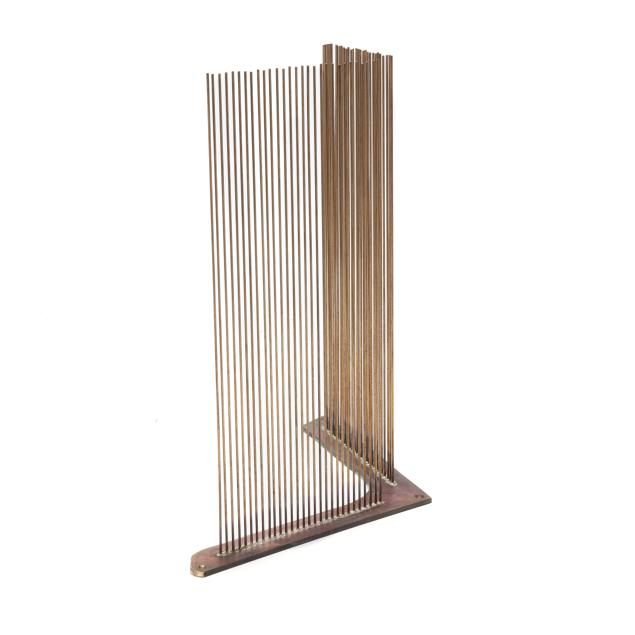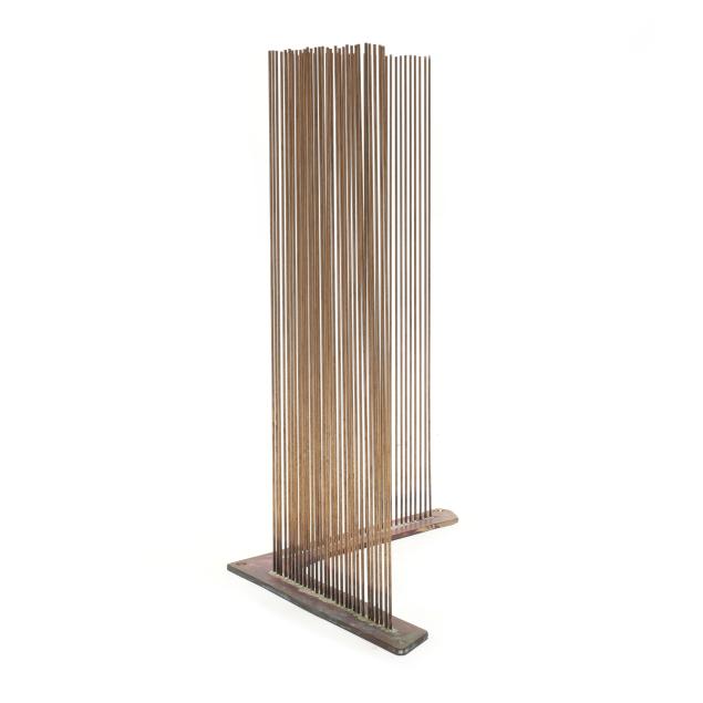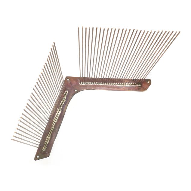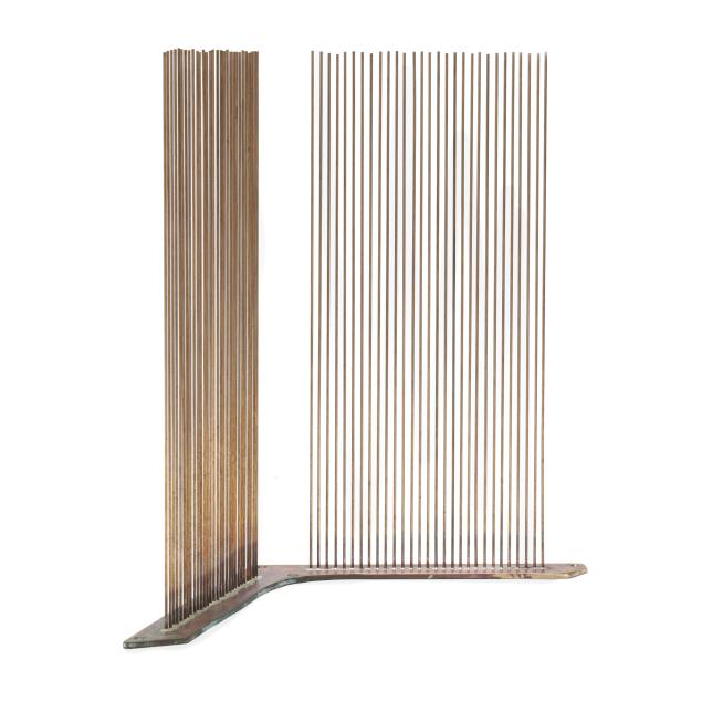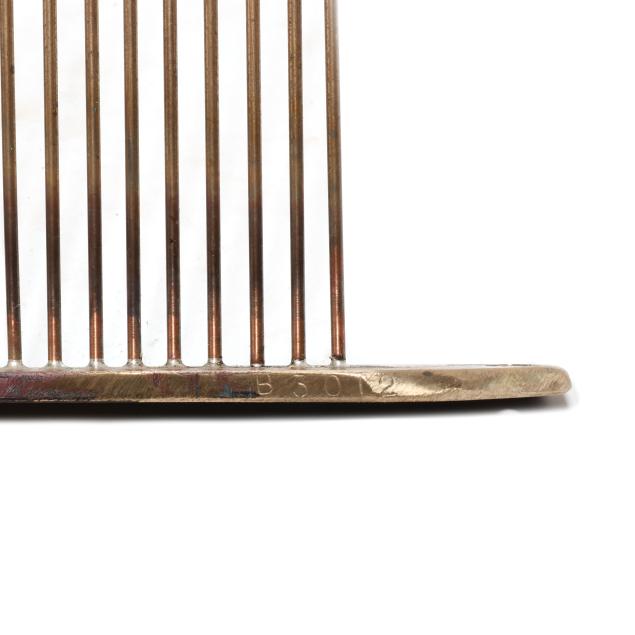 completed in 2025, featuring two rows of (29) beryllium-copper rods soldered to a copper boomerang form base, stamped B-3012. Included with the lot is a signed certificate of authenticity and custom wood crate.