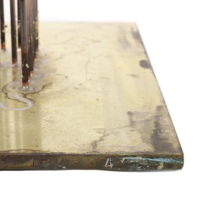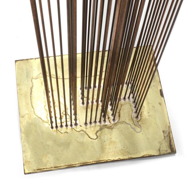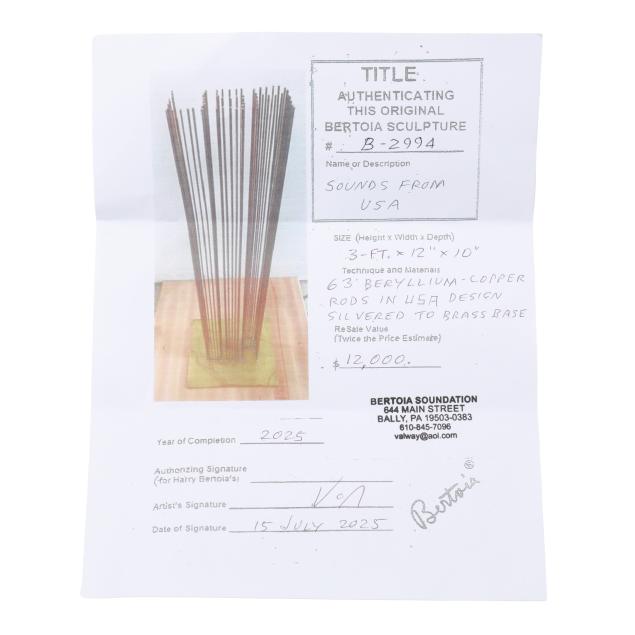 completed in 2025, featuring (63) beryllium-copper rods arranged as "U S A" and soldered to a rectangular brass base, stamped B_2994. Included with the lot is a signed certificate of authenticity and custom wood crate.