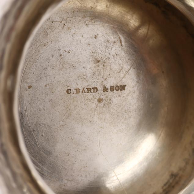 Two pieces with mark of C. Bard & Co., circa 1850 - a teapot (9 1/2 in.) and waste bowl (6 1/2 x 6 5/8 in. diameter). Each a close copy of the earlier design by Williamson, no monograms.