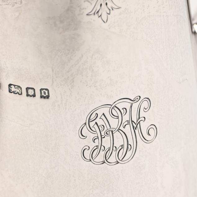London (1921) and (1929); in a uniform pattern with engraved cartouche and architectural decoration to the shoulders, fitted with wooden handles; each with a matching "FBH" monogram.