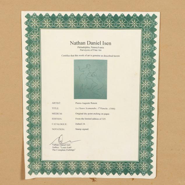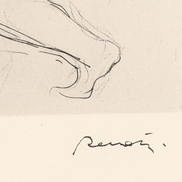 Etching on cream wove paper, circa 1900, inkstamp signature at lower right, with full margins, matted and framed.