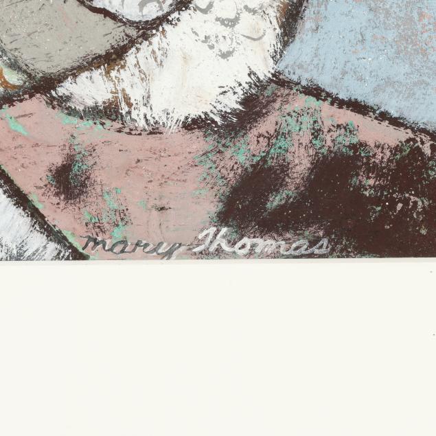 Mary Leath Thomas's early works were lyrical and atmospheric depictions of the southern landscape. In 1941, after viewing a retrospective of Paul Klee's work at the Museum of Modern Art, she began working in a more modern style. Her work was well received and has been exhibited at the Pennsylvania Academy of the Fine Arts, the Metropolitan Museum of Art, Brooklyn Museum, High Museum, Georgia Museum of Art, and the North Carolina Museum of Art.