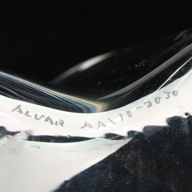 Finland, early production by Iittala circa 1960, model 3030 originally designed 1930s, mold blown, signed "ALVAR AALTO - 3030" to underside.