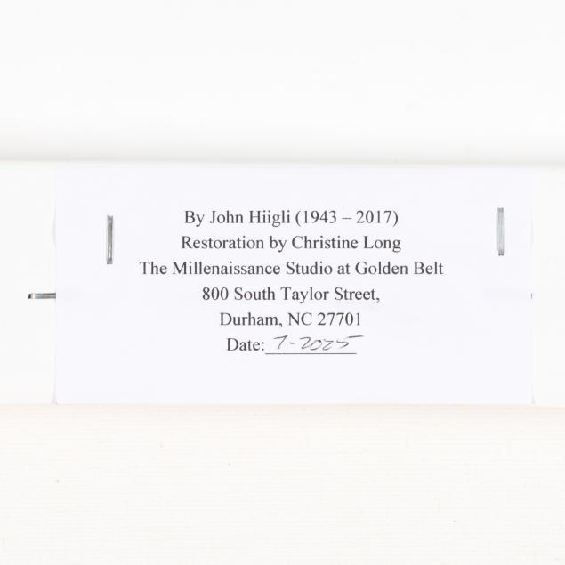 Being sold to benefit NC Modernist, a non-profit documentation of Modernist houses across North Carolina. John Hiigli was an abstract geometric painter and co-founder / co-director of Le Jardin a l'Ouest (the French-American preschool). He attended the University of Indiana in the early 1960s, the New York Studio School of Drawing, Painting and Sculpture in the mid-1960s sixties, Empire State College in the mid-1980s and Bank Street Graduate School of Education in the late 1980s.
