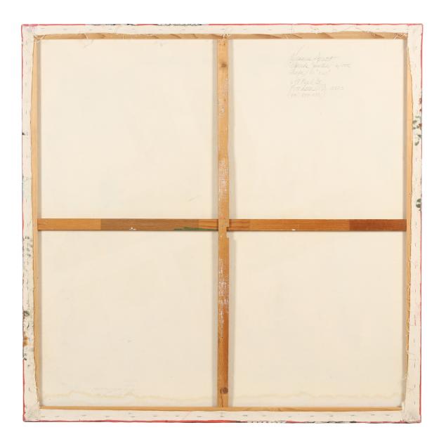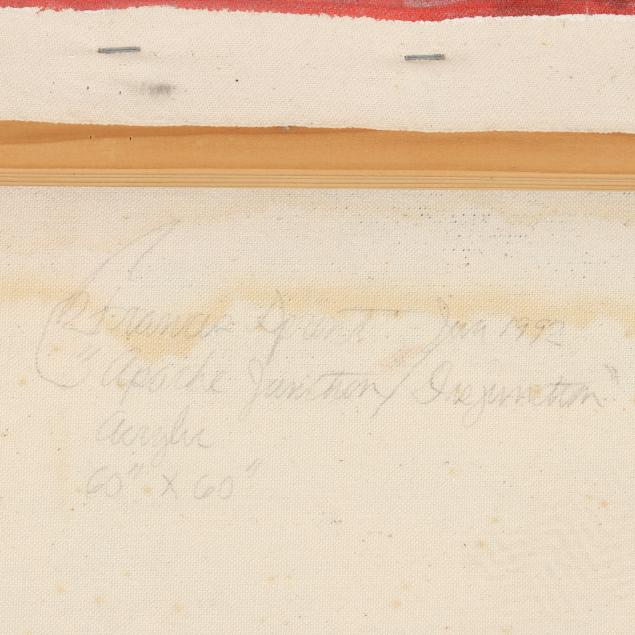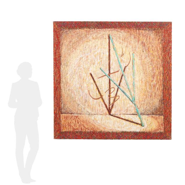Acrylic and mixed media on canvas, 1992, signed and inscribed to the verso, gallery wrapped canvas.