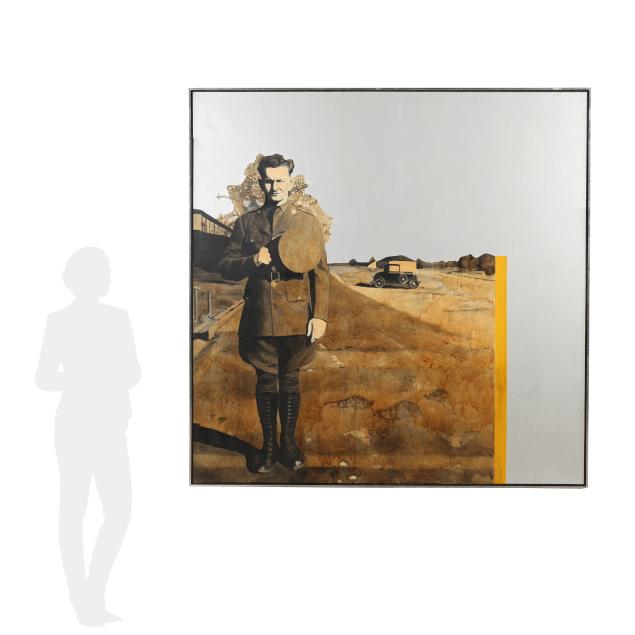 Stretcher size 68 1/2 x 68 1/2 in. Frame dimensions 69 3/4 x 69 3/4 in.