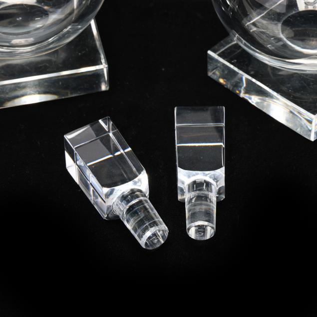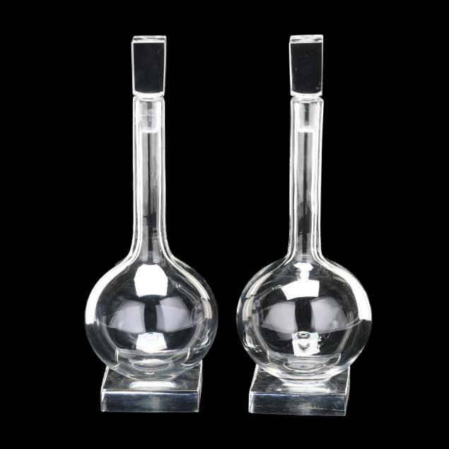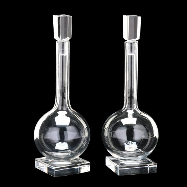 Modern American, Knickerbocker-3400 decanters with stoppers, one inscribed "10" and the other "31" underneath rim and underside of stoppers.
